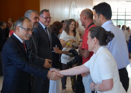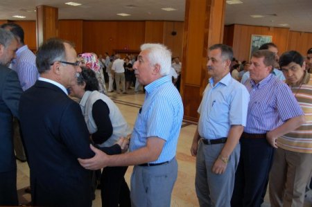 OMÜ'de bayram tatilinde olan personel tatil dönüşü üniversitenin Atatürk Kongre ve Kültür Merkezi’nde düzenlenen bayramlaşma töreninde bir araya geldi. Törene katılan Rektör Prof. Dr. Hüseyin Akan, akademisyenlerin yanı sıra idari personellerle bayramlaştı. YÖK Üyesi Prof. Dr. Sait Bilgiç ve Rektör Yardımcısı Prof. Dr. Ahmet Bulut’un yer aldığı bayramlaşmaya çok sayıda fakülte dekanı, bölüm başkanı, öğretim üyesi de hazır bulundu. Bayramlaşmanın ardından bilim adamları birbirleriyle sohbet etti. CİHAN