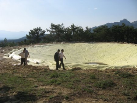 Göletleri sentetik hammaddelerden oluşan ve su yalıtımı sağlaması için kullanılan yüzey koruyucu tabaka olan jeomembrandan yaptıklarını belirten Oklu, şunları kaydetti: "Betonarme sistemiyle yapılan göletler bu kadar sağlam olmadığı gibi daha pahalıya mal oluyor. Hem her yere yapılamıyor. Beton göletler 75-80 bin liraya mal olurken jeomembran göletini biz bir hafta gibi kısa sürede yaklaşık 15 bin liraya yapabiliyoruz. Yapacağımız göletler ormana yakın bakir kıraç tarlaların yakınına yapacağımız için buradaki ürünler verimli hale gelecek. Bu göletler kışın dolacak yazın kullanılacak. Küçük pınarlarla beslenecek."