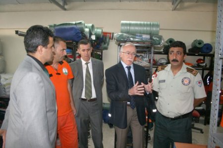 Sivil Savunma Uzmanı Ferit Demir, İl Afet ve Acil Durum Müdürü İbrahim Tarı'ya Osmangazi Belediyesi'nin çalışmaları hakkında bilgi verdi. Bursa’da sadece Osmangazi Belediyesi’nde bulunan tam donanımlı arama kurtarma aracı, Afet Acil Durum deposu ile arama kurtarma ekipman ve malzemelerinin bulunduğu depoyu gezdirdi. Osmangazi bölgesinde meydana gelebilecek herhangi bir afet durumunda acil ihtiyaçlara anında cevap verebilecek kapasiteye sahip olduklarını dile getiren Demir, altı mahallede Afet Acil Yardım Konteynırı ve gönüllü yardım ekipleri oluşturduklarını ifade etti.