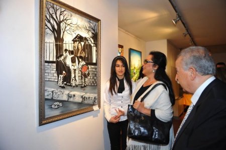 Abdurrahman Keskiner Güzel Sanatlar ve Spor Lisesi müzik bölümü öğrencilerinin çaldıkları eserler eşliğinde sergiyi gezen ünlü isimler, tablolar hakkında öğrencilerden bilgi alarak, tebriklerini iletti.