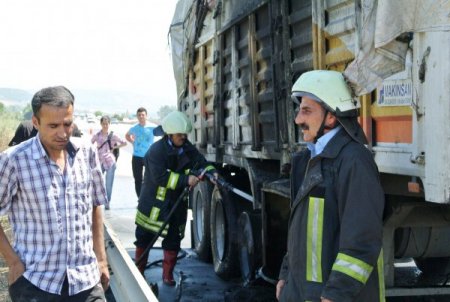 Osmaniye’de otobanda seyir halindeki TIR'ın dorse lastiğinin patlaması sonucu yandı. Küçük çaplı yangında dorsede maddi hasar meydana geldi.