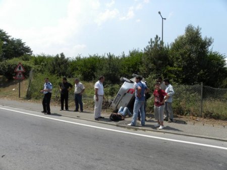 Sakarya Caddesi'nde Sapanca'dan Adapazarı yönüne giden Esin Ergin'in kullandığı 54 YY 273 plakalı otomobil, Göl Mahallesi mevkiinde sürücüsünün direksiyon hakimiyetini kaybetmesi sonucu yol kenarında motosikletiyle bekleyen Sinan Demir'e (25) çarptı. TEM otoyolunun tel örgülerini yıkarak devrilen otomobilde yolcu olarak bulunan Orhan Durmaz ile motosiklet sürücüsü Sinan Demir yaralandı. Olay yerine çağrılan sağlık ekibi tarafından ilk müdahaleleri yapılan yaralılar, Toyotasa Acil Yardım ve Travmatoloji Hastanesi'ne sevk edildi.