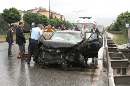 Kaza, bu sabah Orhangazi ilçesi girişinde meydana geldi. Edinilen bilgiye göre; Bursa istikametinden İzmit’e devam eden Yüksel Korkmaz (30) yönetimindeki 41 PZ 280 plakalı otomobil, Orhangazi girişinde bariyerlerin başlangıç noktasına çarptı. Yaklaşık 20 metre bariyerlere çarparak sürüklenen otomobil anayolda ters istikamete dönerek durdu. Otomobildeki sürücü Yüksek Korkmaz (30), eşi Birsen Korkmaz, kardeşleri Sevgi Korkmaz (25) ve Sibel Korkmaz (27) ile 2 yaşındaki oğlu Oğulcan yaralandı.
