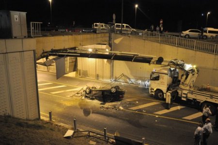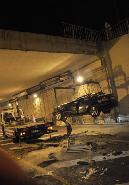 Üsküdar’da aşırı hızlı olduğu ileri sürülen otomobil, yol kenarındaki bariyerleri parçaladıktan sonra metrobüslerin kullandığı alt geçide düştü. Olay esnasında geçitte metrobüsün bulunmaması olası faciayı önledi. Ancak araçta bulunan 1 kişi öldü, 3 kişi de yaralandı.