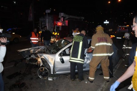 İzmir'de meydana gelen trafik kazasında aşırı hız ve dikkatsizlik sonucu kontrolden çıkan bir otomobil sahil bulvarında palmiye ağacına çarptı. Kazanın şiddetiyle otomobilin motoru yerinden çıkarak palmiye ağacının altında kalırken, otomobilde bulunan 2'si polis 4 kişi yaralandı. Otomobil sürücüsü polis memuru araç içinde sıkışınca olay yerine itfaiye ekipleri çağrıldı. Kaza, gece saat 01.30 sıralarında Konak ilçesi Mustafa Kemal Sahil Bulvarı'nda Polisevi karşısında meydana geldi. Konak'tan Balçova yönüne seyreden İzmir Emniyet Müdürlüğü Çevik Kuvvet Şube Müdürlüğü'nde polis memuru olarak görev yapan Mehmet Gökdoğan (24) yönetimindeki 35 YK 552 plakalı otomobil aşırı hız ve dikkatsizlik sonucu sürücüsünün kontrolünden çıktı. Sürücüsünün kontrolünden çıkan otomobil yol kenarındaki büyük palmiye ağacına çarptı. Çarpmanın şiddetiyle palmiye ağacı yere devrilirken, otomobilin motoru da yerinden çıkarak ağacın altında kaldı. Ağaca çarptıktan sonra bir süre daha sürüklenen otomobilin parçaları oldukça geniş bir alana yayıldı. Kazada, otomobil sürücüsü Polis Memuru Mehmet Gökdoğan araç içinde sıkışırken, otomobilde bulunan diğer polis memuru Mehmet Sardoğan (24) ile Mustafa Akkaya (24) ve Salih Duruol (24) çevreden yetişen vatandaşlar tarafından hurda yığınına dönen otomobilden çıkarıldı. Yaralılardan Mehmet Sardoğan ve Salih Duruol ambulansla Atatürk Eğitim ve Araştırma Hastanesi'ne Mehmet Akkaya ise Alsancak Devlet Hastanesi'ne kaldırıldı. Otomobil içinde sıkışan sürücü Mehmet Gökdoğan için olay yerine Arama ve Kurtarma (AKS) ekipleri çağrıldı. Ekiplerin yaklaşık yirmi dakikalık çabaları sonucu Mehmet Gökdoğan'da sıkıştığı yerden çıkarılarak ambulansla 9 Eylül Üniversitesi Tıp Fakültesi Hastanesi'ne kaldırıldı. Yaralılardan araç sürücüsü Gökdoğan'ın hayati tehlikesinin bulunduğu diğer yaralıların ise sağlık durumlarının iyi olduğu öğrenildi. Bu arada, kazanın yaşandığı dakikalarda aynı yerde ikinci bir kaza daha meydana geldi. Ancak ikinci kazada ölen yada yaralanan olmadı, maddi hasar oldu. Polis, kazayla ilgili olarak soruşturma başlattı.