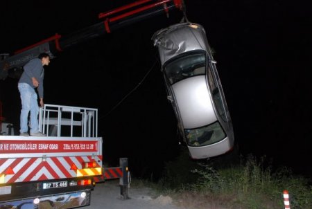 Şarampole yuvarlanan otomobil ise yapılan 2 saatlik kurtarma çalışması sonrasında çıkarıldı. Büyük hasar gören otomobil yedi emine alındı.