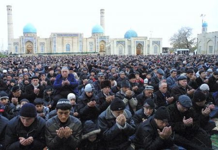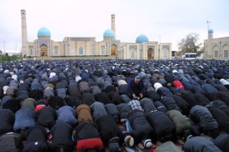 Başkent Taşkent'te sabahın erken saatlerinde yediden yetmişi on binlerce Müslüman, bayram namazı için camilere akın etti. Camilere sığmayan Müslümanlar, namaz için güvenlik güçlerince araç trafiğine kapatılan cami çevresindeki açık alanlarda saf tuttu.