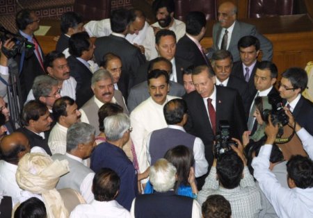 Başbakan Recep Tayyip Erdoğan’a Pakistan parlamentosunda büyük ilgi gösterildi. Erdoğan'ı salona gelişinde önce ayakta alkışlayan vekiller, konuşmadan sonra ise Erdoğan'la tokalaşma kuyruğuna girdi.