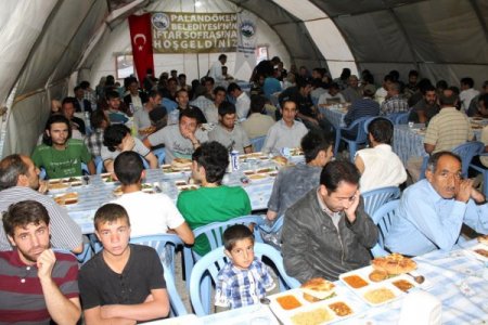 Palandöken Belediyesi tarafından geleneksel hale getirilen iftar çadırları bu yıl hayırsever vatandaşların katkıları ile üç farklı bölgede kuruldu. Yıldızkent semtinde Bölge Eğitim ve Araştırma Hastanesi'nin karşısındaki alanda kurulan iftar çadırı her gün Kars, Ağrı, Muş, Erzincan, Bingöl, Bayburt'tan gelen hasta ve yakınlarını ağırlıyor. Ramazan ayı süresince fırsat buldukça vatandaşla iftar sofralarında bir arada olmaya çalışan Palandöken Belediye Başkanı Orhan Bulutlar, sosyal belediyeciliğe önem verdiklerini belirtti. Başkan Bulutlar, "Üç iftar soframızda yaklaşık 15 bin kişi aynı sofrada buluşarak birlikte iftar yapıyor. İftar soframız amacına ulaşmıştır. Belediye olarak kurduğumuz sofralarımızda ikram edilen yemekler sadece gelenlere değil gelmeyenlere de gidiyor. Yaşlı, hasta ve kimsesiz olanların evlerine de yemek servisi yapılıyor. Ayrıca yine dar gelirli yaklaşık 3 bin ailemize kuru gıda yardımı, 350 aileye 12 ay boyunca günlük 950 ile bin adet arasında ücretsiz ekmek yardımı yapılıyor." diye konuştu.