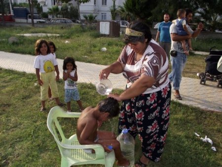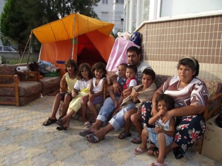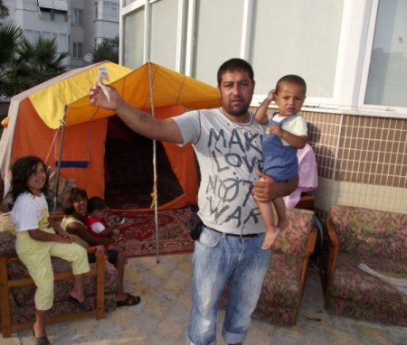 9 çocuklu Ercan ve Makbule Tanrıkut çifti Edremit’in Akçay beldesinde oturdukları evlerinden ev sahibi tarafından evi pansiyon yapacağı gerekçesi ile çıkartıldı. Tanrıkut ailesi o günden beri ev arıyor. 9 çocukları bulunduğu için kimsenin ev vermeye yanaşmadığı Ercan ve Makbule Tanrıkut çifti yaklaşık 1 aydır bir kooperatifin yeşil alanına kurdukları çadırda yaşamaya çalışıyor. Eşyalarının bir kısmı çadırın içinde bir kısmı sokakta bulunan Tanrıkut ailesi, çocuklarını da güneşte ısıttıkları su ile çadırlarının bulunduğu yeşil alanın ortasında yıkıyor.