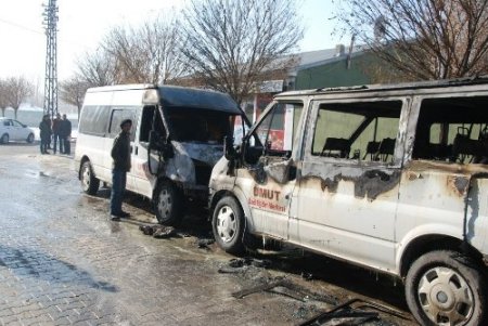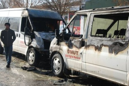 Ağrı’nın Patnos ilçesinde kimlikleri belirlenmeyen kişiler iki minibüsü kundaklayıp kayıplara karıştı.