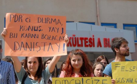 Eğitim Fakültesi bahçesinde toplanan yüzlerce öğrenci, hazırlayıp açtıkları pankartlarla ve sloganlarla atamalara karşı tepkilerini dile getirdi. Rehberlik ve Psikolojik Danışmanlık Bölümü öğretim üyelerinin de destek verdiği etkinlikte “Rehber Öğretmen” kadrosuna felsefecilerin atanmasının yanlışlığı dile getirildi.