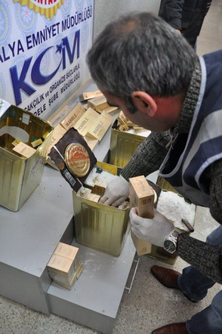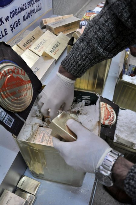 Antalya Emniyet Müdürlüğü Kaçakçılık ve Organize Suçlarla Mücadele Şube Müdürlüğü Mali Suçlar Büro Amirliği ekipleri, Van’dan kargoyla gümrük kaçağı sigara gönderildiği ihbarı üzerine harekete geçti. Sigarayla dolu peynir tenekelerini alacak şahsı kargo şubesinde bekleyen polis ekipleri, teslimatın gerçekleşmesinin ardından G.M.'yi (37) gözaltına altı. Ağızları lehimle kapatılmış tenekeleri açan polis ekipleri, üzeri tuzla kaplı sigara paketlerine ulaştı. Polis köpeklerinin koku almaması için peynir tenekesinin boş kısımları ve üst tarafının tuz ile doldurulduğu bildirildi. Ayrıca tuzun, tenekelerin biraz daha ağır olması için kullanıldığı öğrenildi. 7 teneke peynir kutusunda 768 paket sigara çıktı. Gözaltına alınan G.M., savcılık talimatıyla serbest bırakıldı.