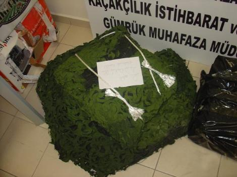 Edirne Gümrük Muhafaza ekipleri, Kapıkule TIR Gümrük Sahasına gelen Fevzi G. yönetimindeki 34 GD .... plakalı TIR'da şüphe üzerine arama yaptı. Aramada, 886 adet PKK terör örgütünün sözde bayrağı, 201 adet terör örgütü elebaşının fotoğraflarının bulunduğu flama, 1640 adet terör örgütü rozeti, 400 adet terör örgütü elebaşının fotoğrafları olan rozet, 6 adet terör örgütünün takvimi, 562 adet muhtelif marka-model tıbbi malzeme, 2 bin 250 dolar, 370 avro, 42 adet siyasi içerikli çoğu terör örgütü elebaşı tarafından yazılmış kitap, 2 adet dürbün, profesyonel video kameralar, cep telefonları, sanayi tipi şalterler ve 18 koli içinde muhtelif elektrik malzemeleri tespit edildi.