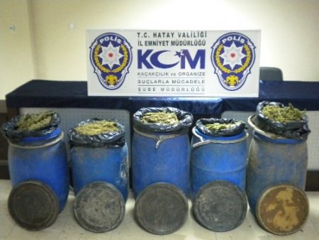 Antakya’ya bağlı Serinyol Beldesinde 90 kilo kubar esrar ele geçirildi. Bir ihbarı değerlendiren Hatay Emniyet Müdürlüğü ekipleri ormanlık arazide plastik variller içerisinde, toprağa gömülü 90 kilo kubar esrar ele geçirildi. Olayla ilgili A.A. (31), İ.K.(64) gözaltına alınırken sorgusu tamamlanan İ.K.’nın adliyeye sevk edildiği ve buradan cezaevine gönderildiği öğrenildi. Emniyette hala sorgusu devam eden A.A.’nın ise sorgusunun devam ettiği edinilen bilgiler arasında yer aldı. CİHAN