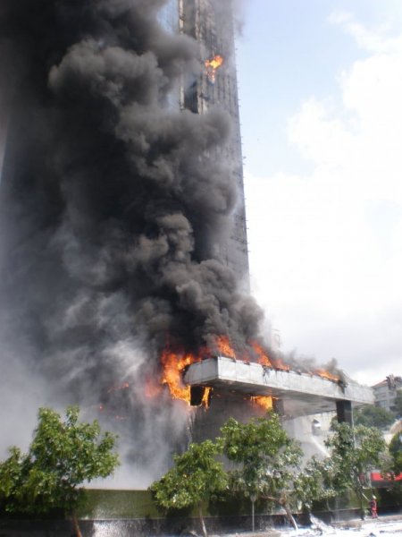 Binanın dış cephe izolasyon sisteminde çıktığı belirlenen yangın, kısa sürede büyüyerek binanın önemli bir bölümünü etkisi altına aldı. Olay yerine çevre ilçelerden çok sayıda itfaiye ekibi sevk edildi. İtfaiye ekipleri yangına dışarıdan köpükle müdahale ederken, özel donanımlı ekipler de yangına içeriden müdahale etti.