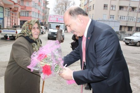 Başkan Çelik, eşi Ayşe Çelik, Belediye Başkan Yardımcıları Şaban Yılmaz ve Ali Öztürk ile ilk olarak belediyede çalışan bayanlara çiçek dağıttı ve onların kadınlar gününü kutladı. Başkan Çelik ve beraberindekiler daha sonra cadde ve sokaklarda bayanlara çiçek dağıttı.
