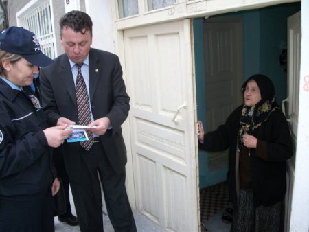 Isparta’nın Yalvaç İlçe Emniyet Müdürlüğü ekiplerinde görevli polis memurları, ev ve işyerlerini ziyaret ederek, vatandaşlara apartman güvenliği, 155 Polis İmdat ve kontör dolandırıcılığı konularında sözlü uyarılarda bulunup broşür dağıtıyor. Yalvaç Emniyet Müdürü Zafer Yiğit, alınacak küçük tedbirlerle huzurlu ve güvenli yaşam sağlanabileceğini belirtti. Apartman kapılarının kapalı durması gerektiğini hatırlatan Yiğit, mahalle veya apartmanda tanınmadık, şüpheli hareketleriyle dikkat çekenlerin 155 Polis İmdat’a bildirilmesini istedi. Telefonla arayarak kendisini polis, komiser, savcı olarak tanıtıp çeşitli bahanelerle telefon kontörü isteyenlerin kendilerine ihbar edilmesini isteyen Yiğit, kesinlikle bu kişilere kontör ya da konuşma süresi gönderilmemesi uyarısında bulundu. Toplum Destekli Polis ekipleri tek tek ev ve işyerlerini dolaşarak kişileri daha huzurlu ve güvenli bir yaşam için vatandaşa bilgi veriyor. Pazar Yukarı Mahallesi'ndeki uygulama sırasında Mehmet Mutaf’a ait evin zilini çalan polisler, kapının sorulmadan açılmasına ve üzerinde anahtar bulunmasına şaşırdı. Polisler ev sahibi Mutaf'a kapının üzerinde anahtar bırakılmaması ve gelenin kim olduğunun sorulmadan kapı açılmaması uyarısında bulundu. CİHAN