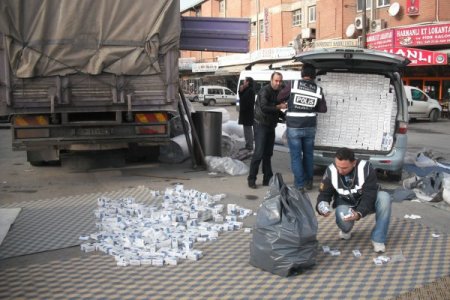 Başakşehir'de bir ihbarı değerlendiren Mali Suçlarla Mücadele Şube Müdürlüğü ekipler, bir kamyon kasasında halıfleks rulolarının içerisine zula yapılmış çok sayıda kaçak sigara ele geçirdi. Sigaraların piyasa değerinin yaklaşık 150 bin lira olduğu belirtildi. Dolapdere Organize Sanayi Sitesi içerisinde bulunan bir kamyonda kaçak sigara olduğu ihbarını alan Mali Suçlarla Mücadele Şube Müdürlüğü, çok sayıda ekiple operasyon düzenledi. Söz konusu kamyon kasasında bulunan halıfleks ruloları polis ekipleri tarafından yere indirildi. Piyasa değeri yaklaşık 150 bin TL olduğu belirtilen çok sayıda kaçak sigara, saklandığı rulolardan çıkarılarak yere dizildi. Kaçak sigaralar minibüsle İstanbul Emniyet Müdürlüğü'ne götürüldü. Olayla ilgili operasyonlarına devam eden mali polis, kaçak sigarayla ilgisi bulunan zanlıları yakalamak için çalışma başlattı.