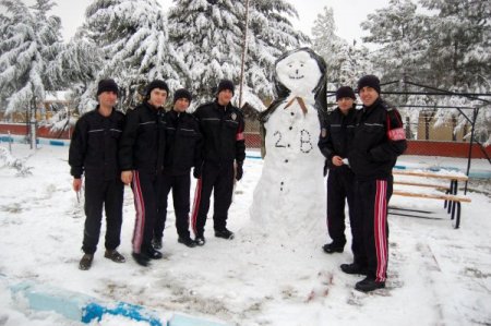 Gaziantep Polis Meslek Yüksekokulu öğrencileri, karın tadını kardan adam yarışması düzenleyerek çıkardı. 12 sınıfın kıyasıya mücadele ettiği yarışmada, birinci gelen takım baklavayla ödüllendirildi. Bazı sınıflar, eserlerini juriye beğendirebilmek için kardan adama polis üniforması giydirdi.