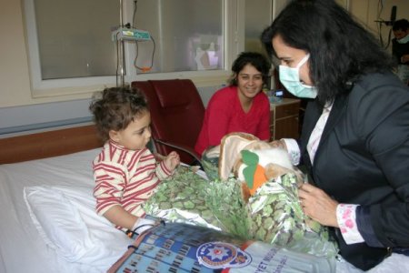 Çocuk Şube Müdür Vekili Serdar Aytekin'in koordinesinde Suç Önleme Büro Amiri Semih Yıldız, polis çocuklarının artık kullanmadıkları oyuncakları tek tek topladı. Büroda polis memurları ile birlikte hediye paketi yapılan oyuncaklar ilk olarak Çukurova Üniversitesi Balcalı Hastanesinde tedavi gören çocuklara verildi. Polis memurlarının hediye ettiği oyuncaklar, çocuklara bayram neşesi yaşattı. Kimi çocuk aldığı ayıya kimi ise polis arabasına sevinip oynamaya başladı. Bazı çocuklar ise polislere balonlarını da şişirmelerini söyledi.