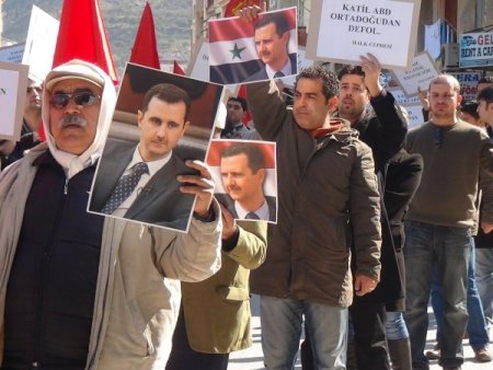 İnsan Hakları Derneği öncülüğünde Hatay’da bulunan sivil toplum kuruluşları tarafından düzenlenen eylem, Hatay Valiliği'nden izin çıkmamasına rağmen yapıldı. Davul zurna eşliğinde gerçekleştirilen eylemde ABD ve AK Parti eleştirildi. Eylemde, Suriye ve Beşar Esed sloganları atıldı. Katılımcılar, "Suriye Irak ve Libya gibi olmasın' yazılı pankartlar taşıdı. Ellerinde Esed ve Suriye bayrakları olan bir grup da eyleme Arapça sloganlarla destek verdi. Eylem, yapılan basın açıklamasının ardından olaysız bir şekilde sona erdi. CİHAN