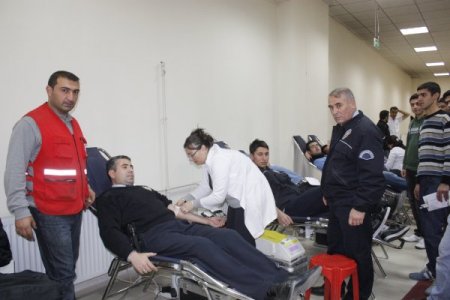 Van’daki deprem sonrasında Türkiye tek yürek oldu.Erzurum Polis Meslek Yüksek Okulu'nun 150 öğrencisi ve personeli de Van’daki depremzedeler için kan bağışında bulundu.