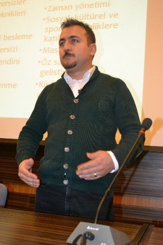 Seminere konuşmacı olarak katılan Psikolog Dr. Şahin Çiftçi, fiziksel egzersizler, gevşeme teknikleri, meditasyon, solunum egzersizi, davranışsal kontrol, dinlenme, beslenme, sosyal destek, zaman yönetimi, sosyal kültürel ve sportif etkinliklere katılma, masaj, öz saygının geliştirilmesi, kişilik özelliklerinin değiştirilmesi konusunda bilgi verdi.