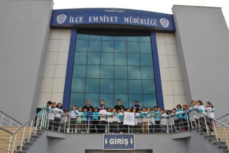 Toplum Destekli Polis Büro Amirliği, ilçedeki 17 ilköğretim okulunda öğrenim gören öğrencilere yönelik farklı projeler geliştirdi. Öğrencilere gruplar halinde Edremit İlçe Emniyet Müdürlüğü’ne götürülen Toplum Destekli Polis Büro Amirliği, çocukları polis motosikletleriyle gezdirdi ve birçok etkinlik gerçekleştirdi. Polis memurları, öğretmenleri nezaretinde birlikte oldukları çocuklara İlçe Emniyet Müdürlüğü’nün tüm kapılarını açtı. İlçe Emniyet Müdürlüğü’nün Parmak İzi Bürosu’ndan, Trafik Tescil Bürosu’na kadar tüm bölümlerini gezen öğrenciler, yetkili polis memurlarının anlatımlarını dikkatle dinledi. Polisten korkmamaları ve hiçbir durumda kendilerinden çekinmemeleri gerektiğini anlayan öğrenciler, polis amcalarına teşekkür etti.