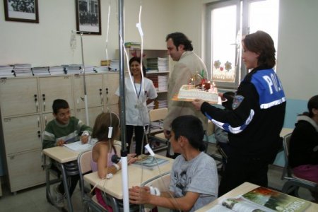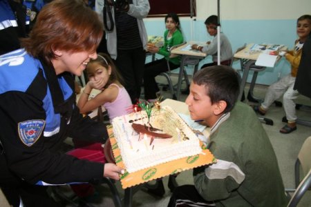 Öğrenciler, kutlama sırasında, polis telsizinden anons da yaparak büyük mutluluk yaşadı. Polisler, ayrıca hastanedeki diğer çocuklara da çeşitli hediyeler verdi. Çocuklar, kendilerine gösterilen ilgi ve alakadan dolayı teşekkür etti.