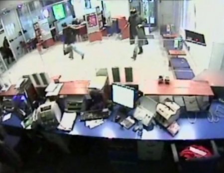 Bu arada, polis, banka soygun anına ait güvenlik kamerası görüntülerini medyaya dağıttı. Görüntülerde, banka şubesine gelen zanlı, pompalı tüfekle bir el ateş ediyor. Zanlının ateş etmesiyle banka görevlileri ve vatandaşlar kaçışıyor. Güvenlik elamanının silahını da gasp eden zanlı, kasadaki görevliye poşeti uzatarak paraları doldurmasını istiyor. 24 bin 545 euro, 28 bin 587 dolar, 49 bin 500 lira ve 122 bin 947 TL değerindeki çeki alan zanlı, büyük bir hızla koşarak bankadan çıkıyor. Zanlının kaçmasıyla bankadakiler de dışarıya çıkarak durumu polise bildiriyor.