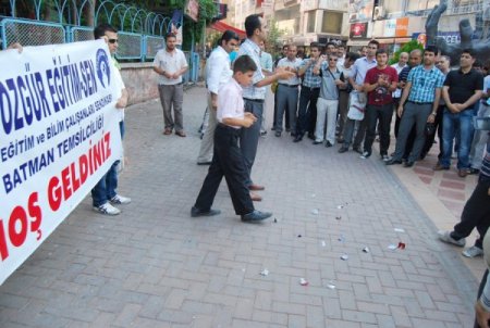 Özgür Eğitim Sen Batman Şubesi, Gülistgan Caddesi'nde düzenlediği basın açıklaması ile Milli Eğitim Müdürlüğü ile bankalar arasında imzalanan maaş promosyon ihalesine tepki gösterdi. Basın açıklamasını okuyan Özgür Eğitim Sen Batman Şube Başkanı Mustafa Sevinçer, bankaların diğer kurumlara ödemeyi kabul ettikleri promosyon miktarı ile milli eğitime teklif edilen arasında bariz bir fark olduğunu ileri sürdü. Diğer kurumlarda çalışan personelin milli eğitimde çalışan personelin 3’te 1, hatta 4’te 1 oranında olduğuna dikkat çeken Özgür Eğitim Sen, buna rağmen bankaların bu kurumlara ödedikleri teklifin altında komik bir rakam teklif etmelerinin düşündürücü olduğunu ileri sürdü. 3 aydır bankaların eğitimcileri tatmin edici bir rakam önermemede ısrar ettiğini ileri süren Özgür Eğitim Sen Batman İl Temsilcisi Mustafa Sevinçer, bankaların inatçı tavrı karşısında bilinçsiz tüketici olmadıklarını göstereceklerini ifade etti.
