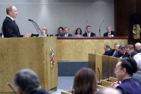Rusya Başbakanı Vladimir Putin parlamentonun alt kanadı Duma'da hükümetin bir yıllık çalışmaları ile ilgili konuşmasını yaptı. Ekonomik krizle birlikte 2009'da bütçe gelirlerinin yüzde 29 azaldığına dikkat çeken Putin, sosyal harcamalarda kesintiye gitmediklerini, yüzde 27,4 oranında artış sağladıklarını söyledi.