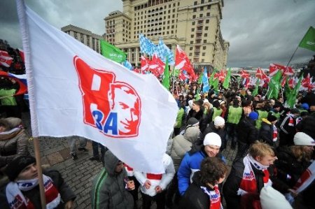 Rusya’da 4 Aralık’ta yapılan parlamento seçimlerinin ardından ülke genelinde iktidar yanlısı ve muhalif gruplar gösterilerine devam ediyor. Cumartesi günü yaklaşık 40 bin kişinin katıldığı muhalif gösteriye karşı Manej Meydanı’nda da bugün 25 bin Kremlin yanlısı grup gösteri yaptı. Rusya Devlet Başkanı Dmitri Medvedev ve Rusya Başbakanı Vladimir Putin resimleri taşıyan gençler seçimlerin adil olduğunu savunuyor.