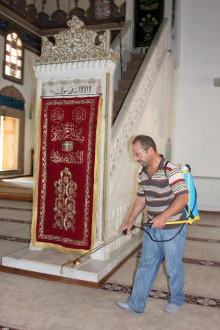 Belediye Temizlik İşleri Müdürlüğü ekipleri, her yıl olduğu gibi bu Ramazan ayı öncesinde de kent merkezindeki tüm camilerin içine daha iyi koksun diye tulumba yardımıyla 150 kilogramı aşkın gül suyu sıkacak.