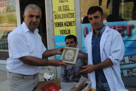 Hakkari Eğitim Sanat Kültür ve Araştırma Derneği (HESKA-DER) Başkanı Sefer Kaçmaz, 'Haydı Ramazan'da Sigara Bırakma Zaman' sloganıyla başlattığı kampanya kapsamında sigara bırakanlara renkli kelime mealli Kuran-ı Kerim hediye etti.