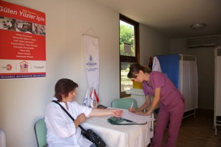 Sağlık kabinlerine gelen vatandaşların geçmişe yönelik sağlık bilgileri kayda alınıp gerekli ilk müdahale gerçekleştiriliyor. Vatandaşların sağlık problemlerini dinleyen hemşire ve sağlık memuru tarafından ilk müdahale yapılıyor. Havaların sıcak ve vatandaşların oruçlu olmalarından dolayı tansiyon ve kan şekeri gibi ölçümler de sağlık kabinlerinde yapılıyor.