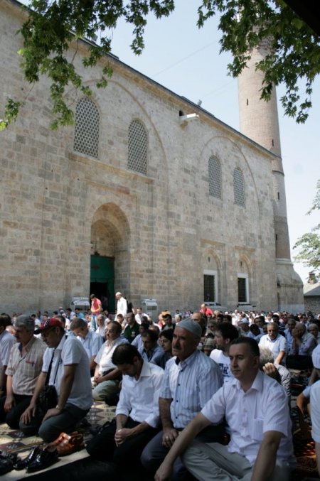 Ramazan ayının ilk cuma namazında Bursa'daki Ulu Cami başta olmak üzere tüm camiler doldu. Bursa Ulu Camii'ne giremeyen yüzlerce kişi sıcak havaya rağmen namazı dışarıda kıldı.
