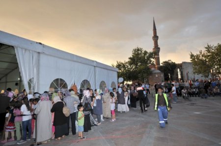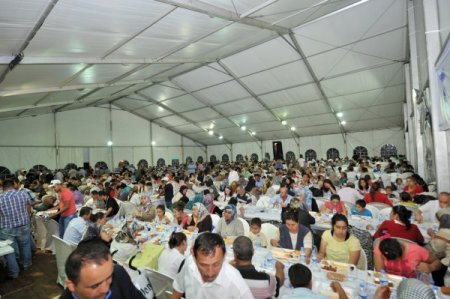 Kavurucu yaz sıcakları nedeniyle klimaların, iftar programlarının izlenebilmesi için LCD ekran televizyonların yerleştirildiği çadırlarda vatandaşlara her gün 4 çeşit yemekten oluşan menü ikram ediliyor. Hijyenin ön planda tutulduğu iftar çadırlarında yemekler bu yıl tek kullanımlık tabaklarda veriliyor.