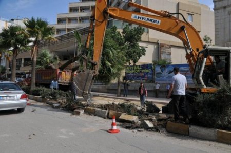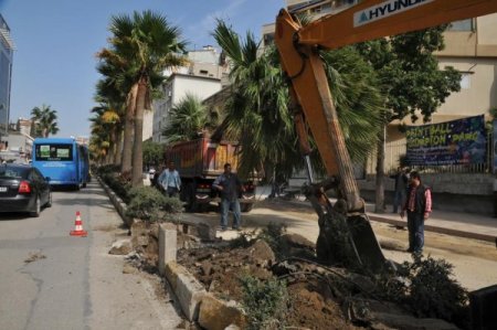 Antakya’nın merkezi caddelerinden biri olan Atatürk Caddesinde bir dönem önce dikilen palmiye ağaçları kaldırılıyor. Antakya Belediyesi, 'Prestij Caddeler Projesi' kapsamında Atatürk Caddesi’ndeki orta refüjde bulunan aydınlatma direkleri ve palmiye ağaçlarını kaldırıyor.
