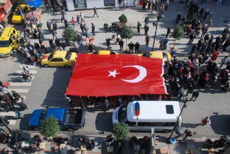 Meydanda toplanan 7 bini aşkın kişi, "Artık Sözün Bittiği Yerdeyiz Gerekirse Kandile de Gireriz”, “Şehitler Ölmez Vatan Bölünmez”, “Kahrolsun PKK” şeklinde sloganlar attı. Öğrencilerin çoğunlukta olduğu kalabalıkta şehitler için dualar okundu. Gruplar, şehir merkezindeki yürüyüşlerinin ardından olaysız bir şekilde dağıldı.