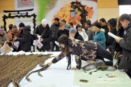 Rusya’nın Yekaterinburg kentinde 60 aşçı 15 saat çalışarak 2,5 kilometre uzunluğunda suşi üretti ve Guinness Rekorlar Kitabı’na girdi. Toplam 1,5 tondan fazla ağırlığa ulaşan dev suşi rulosu müşterilerin beğenisine sunuldu. Organizasyonda yer alan yetkili yaptığı açıklamada, “Rekor kırdık. Toplam 2521 metreye ulaştık. Katkı sağlayanlara teşekkür ediyorum” dedi. Rusya’da her köşe başında açılan suşi restoranlar gençlerin uğrak yeri olmaya devam ediyor. CİHAN