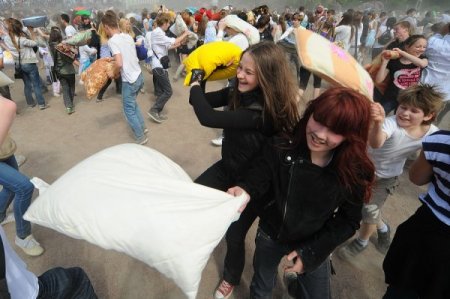 Rusya’nın kültür başkenti St. Petersburg’da gençler yastık savaşı için karşı karşıya geldi. Yüzlerce yastığın havada uçuştuğu savaşın sonunda polis 10 kişiyi gözaltına aldı.