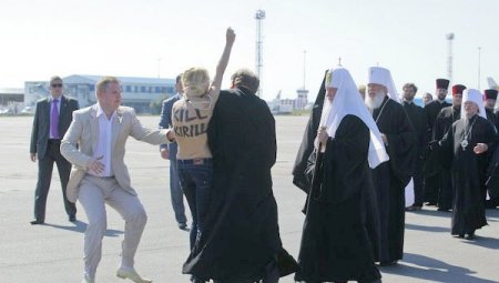 Rusya’da devlet başkanlığı seçimleri öncesi Moskova’da bulunan Kurtarıcı İsa Kilisesi’nde eylem yapan ve Rusya lideri Vladimir Putin aleyhtarı şarkı söyleyen Pussy Riot grubu üyelerinin manevi değerlere saldırmaktan davaları sürüyor. Femen üyesi kadının buna tepki için Kirill’e saldırmak istediği sanılıyor.