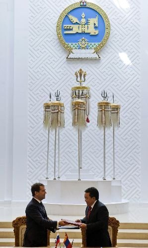 Moğolistan uranyum rezervlerinin Rus-Moğol ortak şirketi tarafından işletilmesini öngören anlaşma imzalayan Rusya lideri, yarın da tarihi Halkın Gol savaşının yıl dönümü kutlamalarına tanıklık edecek. 1939 yılı Ağustos ayında Japon Kwantung ordusunun Moğolistan'ı işgal etmesi üzerine Sovyet Ordusu'nun desteğini alan Moğolistan, Japonlara karşı zafer kazanmıştı. Medvedev'in geleneksel Moğol spor müsabakalarına da katılması bekleniyor.