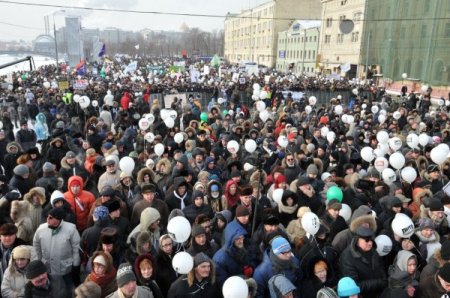 Muhalif göstericiler ellerinde beyaz balon ve “Adil Seçim” dövizleri taşıdı. “Putin’siz Rusya” sloganı atan göstericiler eksi 20 derece soğuğa rağmen meydanda yapılan konuşmaları sık sık sloganlarla kesti. Göstericilere göre Sovyetler Birliği’nin dağılmasından bu yana en büyük kalabalığın katıldığı gösteriye muhalif parti liderleri yer almazken, Komünist Parti ve ulusalcı grupların dev bayraklarla mitinge katıldığı görüldü.