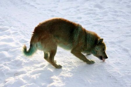 Demiryolu çevresinde yaşayan sokak köpeklerinin günden güne yeşile dönmesi çevre sakinlerini endişelendiriyor. Bölge Halk Sağlığı yetkilileri köpeklerin bilinmeyen bir kimyasal madde yemiş olabilecekleri üzerinde duruyor.