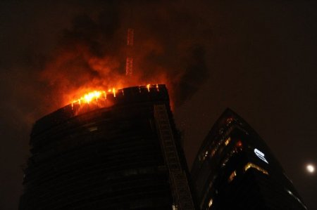 Henüz inşaatı süren binanın 67. katında çıkan yangının söndürülmesi için Ka-32 savaş helikopterleri de devreye girdi. Yerel saat ile 20:10’da başlayan yangının çıkış nedeni ile ilgili inceleme başlatıldı.