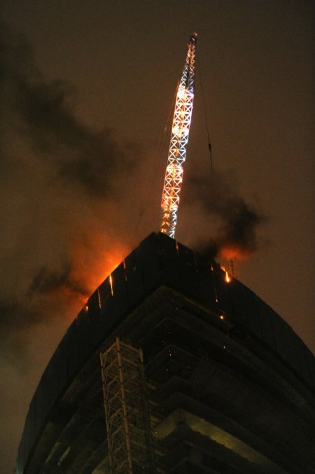 Henüz inşaatı süren binanın 67. katında çıkan yangının söndürülmesi için Ka-32 savaş helikopterleri de devreye girdi. Yerel saatle 20:10’da başlayan yangının çıkış nedeni ile ilgili inceleme başlatıldı.