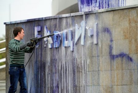 Rusya’nın ilk Devlet Başkanı Boris Yeltsin’in, doğduğu şehir Yekaterinburg’daki 10 metrelik anıtına kimliği belirsiz kişilerce saldırı yapıldı. Anıt maviye boyanırken, üzerindeki yazılar da kırıldı.
